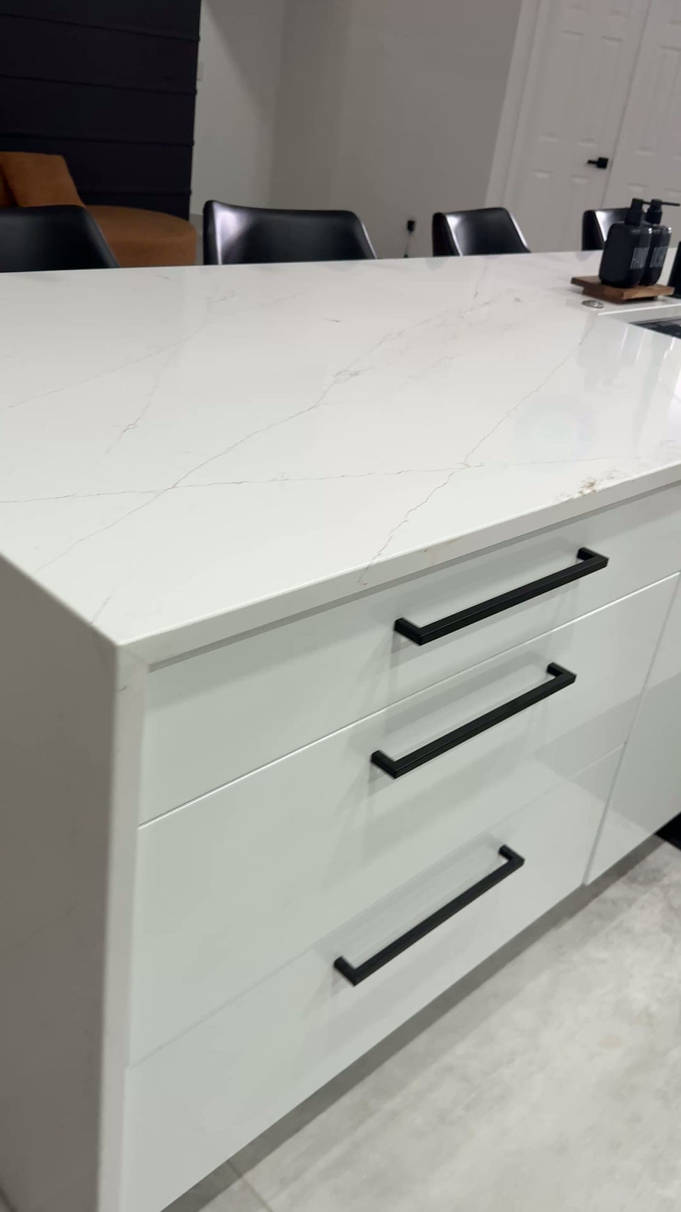 A clean, modern design now replaces the old finishes — featuring streamlined cabinetry, a spacious island for gathering, and high-end materials that elevate the room’s overall feel. By optimizing every inch, we introduced significantly more usable storage and counter space while creating a bright, luxurious kitchen that feels expansive, inviting, and truly custom to the way this family lives.